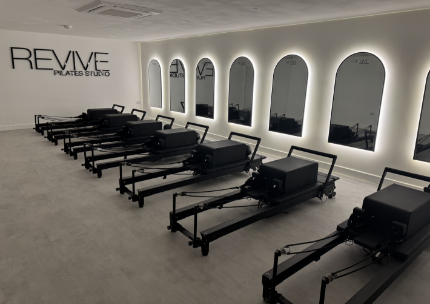 At Revive, our studios are equipped with 7 Reformers machines. Each reformer machine is spaced apart to encourage a feeling of openness and calmness. Each reformer has their own mirror, helping you refine your technique while fostering a stronger connection to your body.
